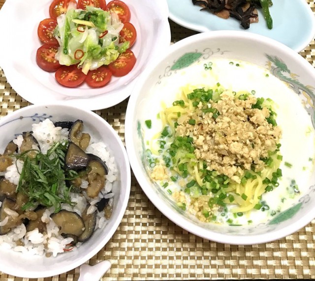 | メニュー | 辣白菜、豆乳と肉みそのカレーそば、茄子飯ほか |