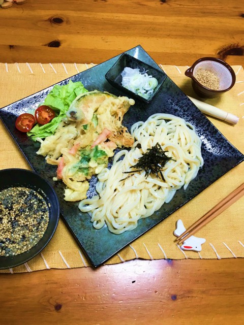 | メニュー | 手打ちうどん、フライパンで天ぷら、夏の和菓子 |