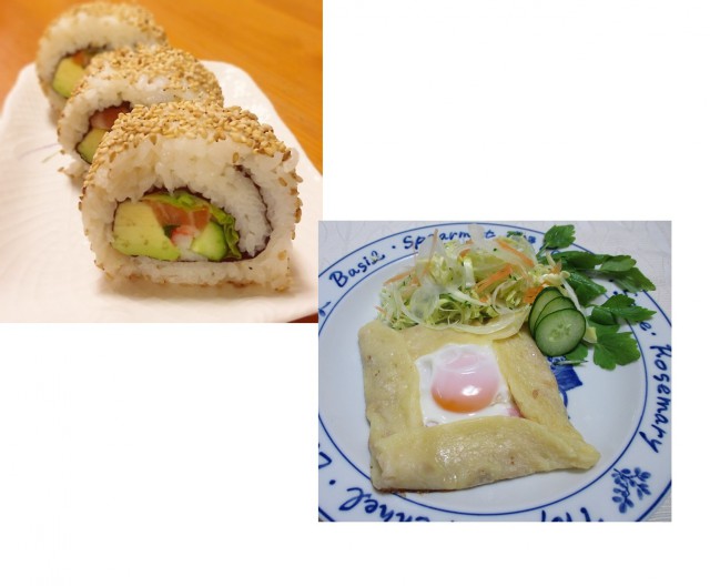 | メニュー | カルフォルニアロール、ガレット、和菓子他 |